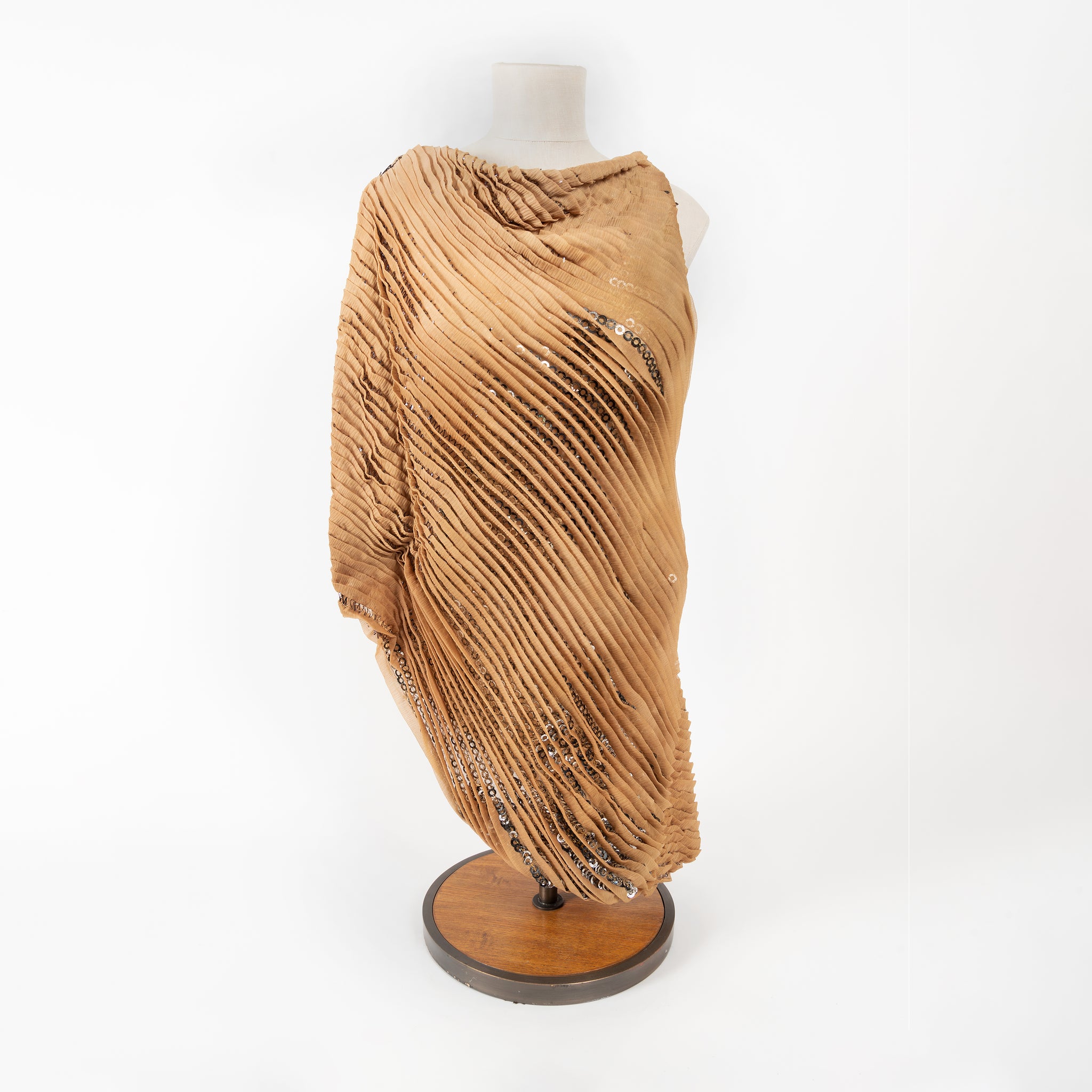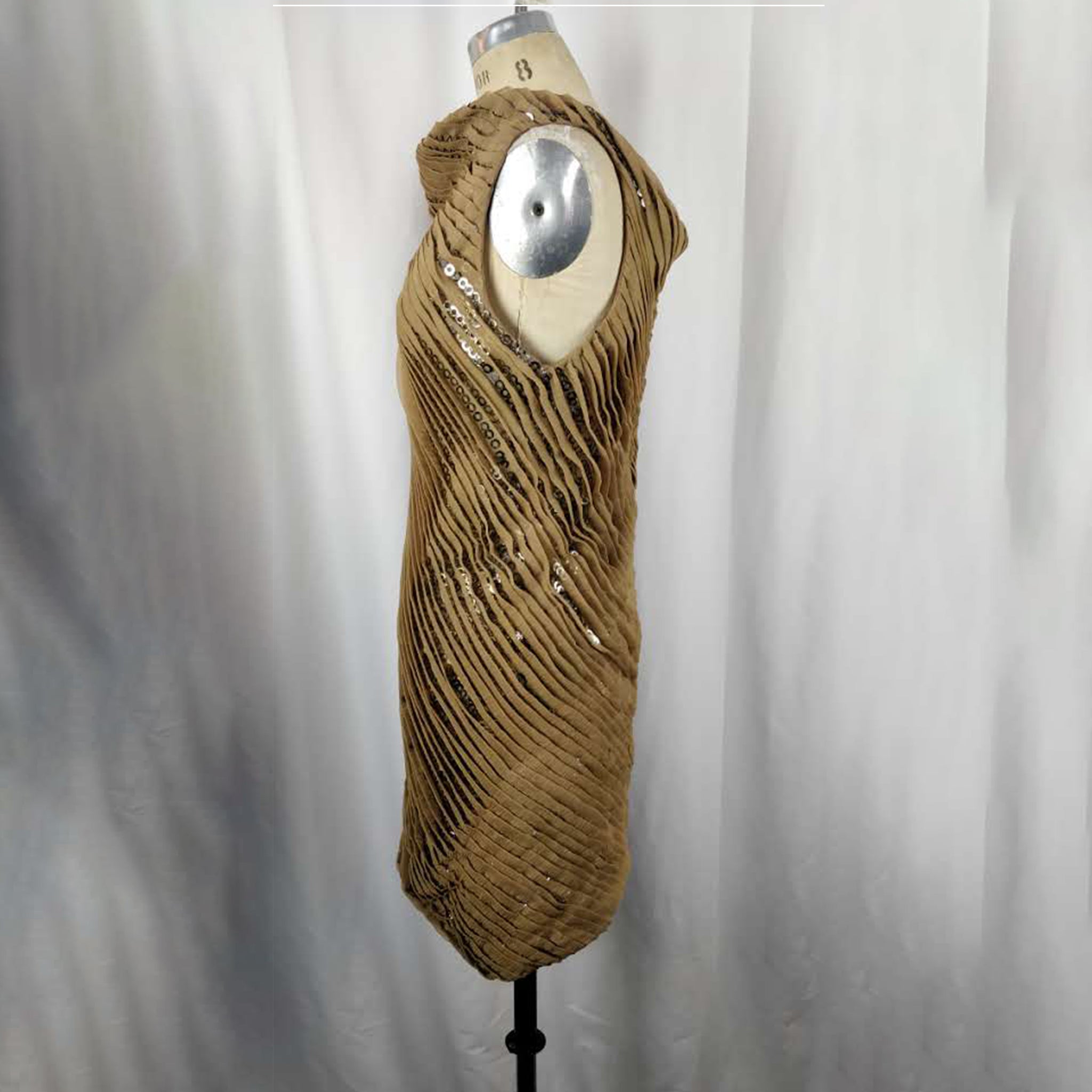 With hidden silver and gunmetal sequins one-of-a-kind because this piece is cut on the bias it fits size S/and M