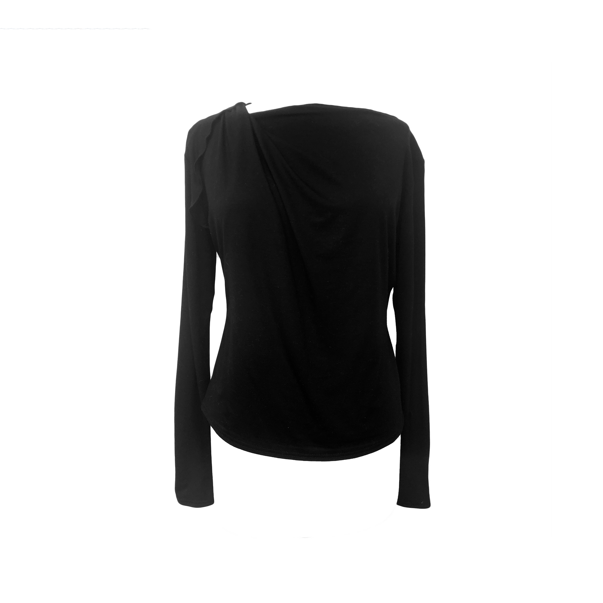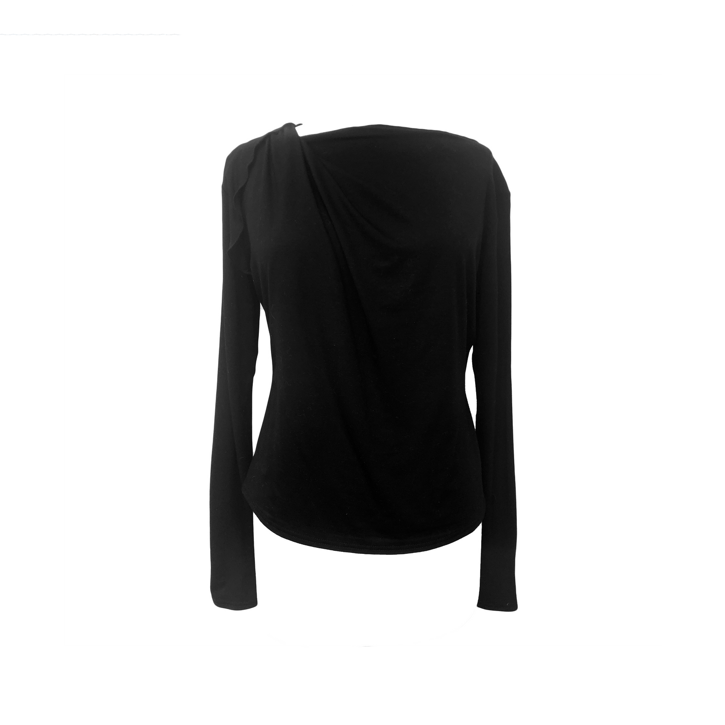 The Tiara is a Heike NY classic. In the Bamboo Jersey collection, this piece is an a asymmetrically draped long sleeve top.