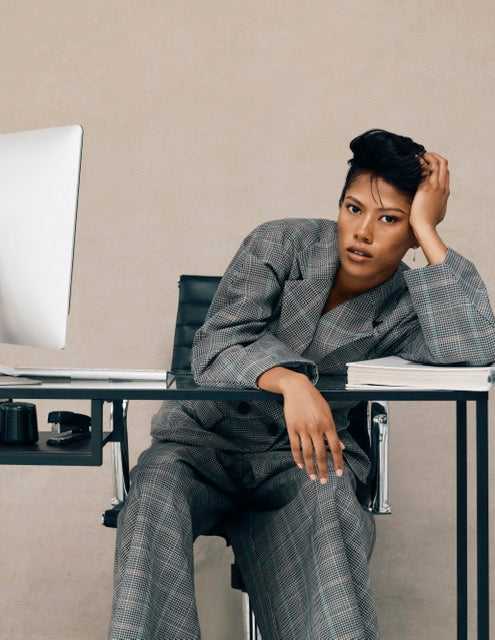 A classic double breasted fitted blazer, cut on the bias with our new balloon sleeve.