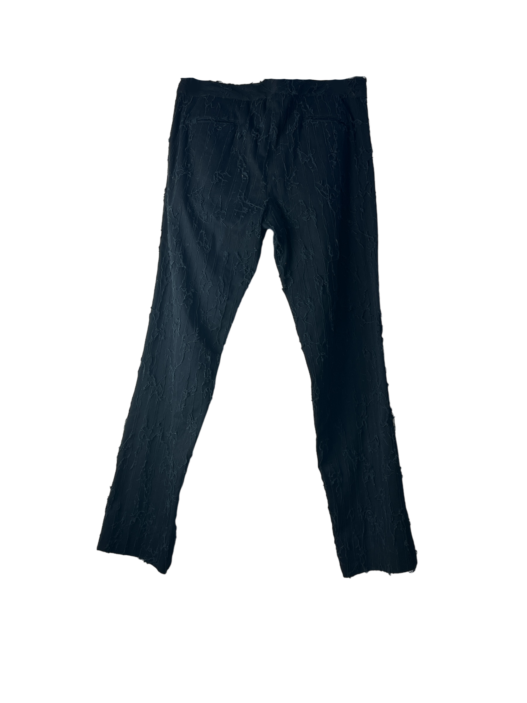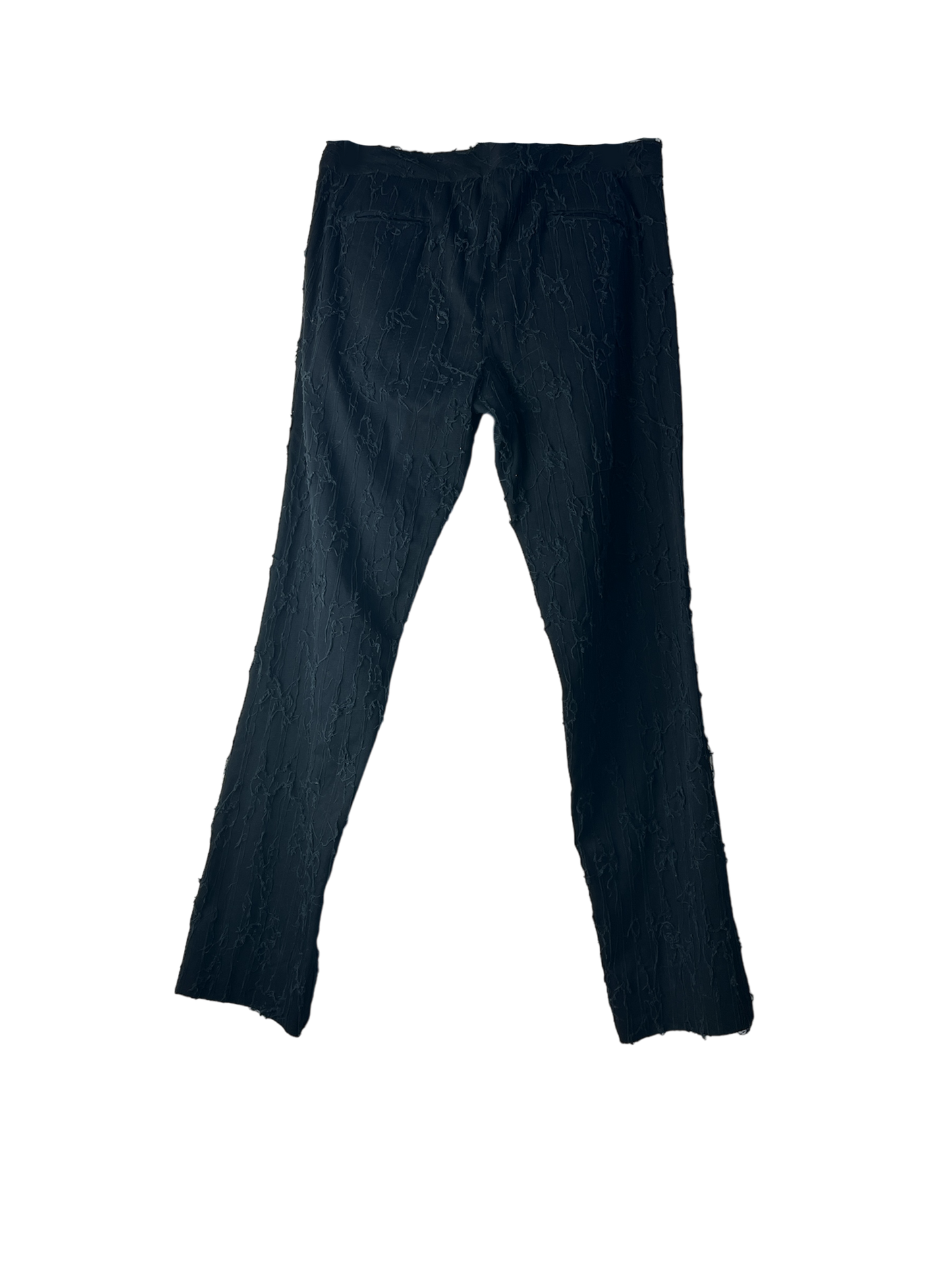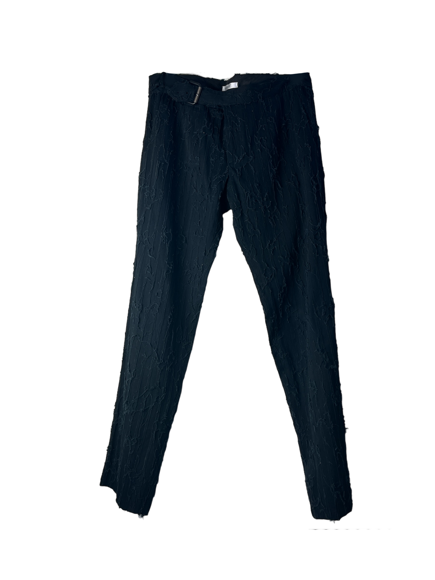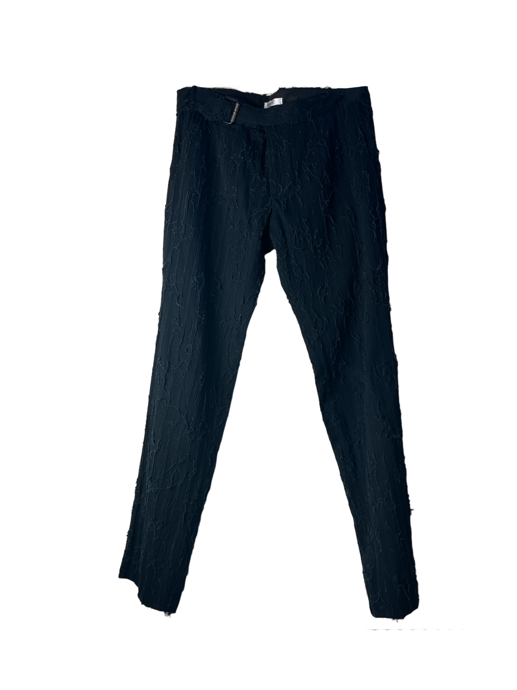 Heike's 'Shredded Cotton Side Buckle Pant' mixes unique craftmanship into the traditional pant. It has a unique integrated belt that buckle onto the side adding a tasteful and fashionable detail. Crafted in an eye-catching shredded fabric, it is unlike any other, and is sure to draw attention wherever you may go.
