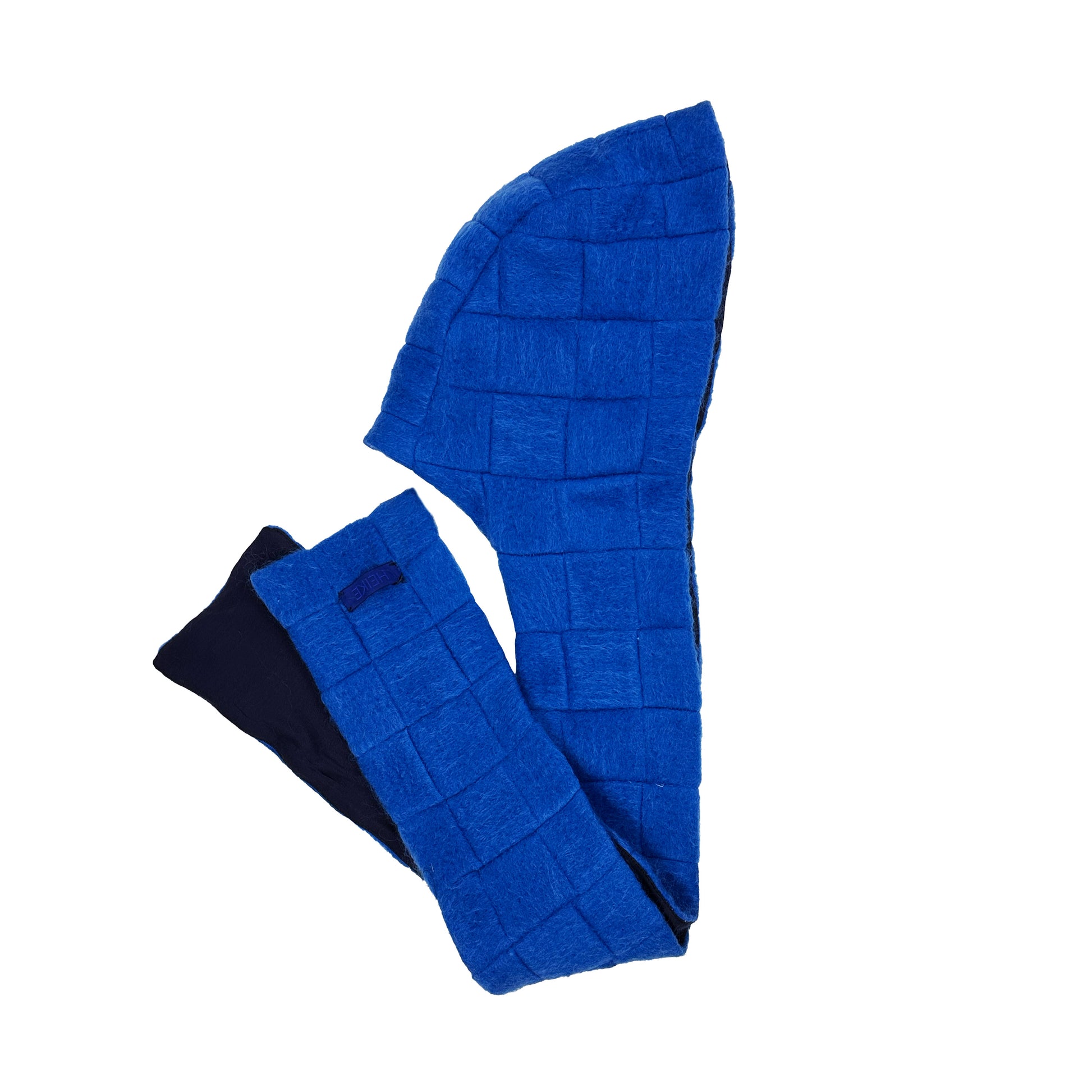 Wrap yourself in conscious luxury with this scarf featuring an integrated hood, thoughtfully crafted from sustainable mohair fabric scraps; each piece carries a unique character. The mohair drapes with airy elegance while the hood frames the face in a cocoon of cloud-soft comfort. Both practical and poetic, this design merges artisanal craftsmanship with modern sustainability, transforming reclaimed materials into a refined, one-of-a-kind winter essential.