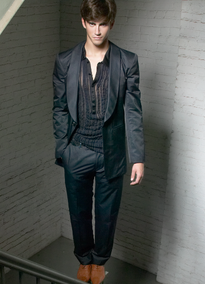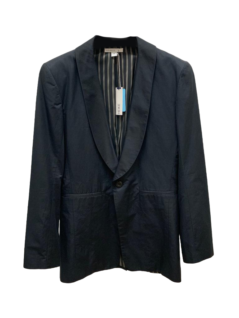Heike's Smoking jacket with striped lining, combines a traditional design with unique details to make the piece stand out. It is a tight fitting jacket with button closures, featuring pockets in the front. The stand out feature of this piece is the tasteful contrast sleeve accent that accentuates the wrist. Making this jacket the go-to for any event.